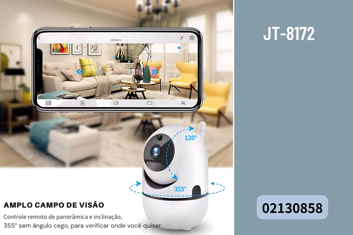 A Câmera IP Smart HD WiFi Rotativa Jortan JT-8172 é a solução ideal para monitoramento seguro e prático em residências, escritórios e estabelecimentos comerciais. Com movimentação motorizada PTZ, áudio bidirecional e visão noturna infravermelha, ela oferece monitoramento remoto completo via aplicativo, proporcionando mais segurança e controle sobre seu ambiente.