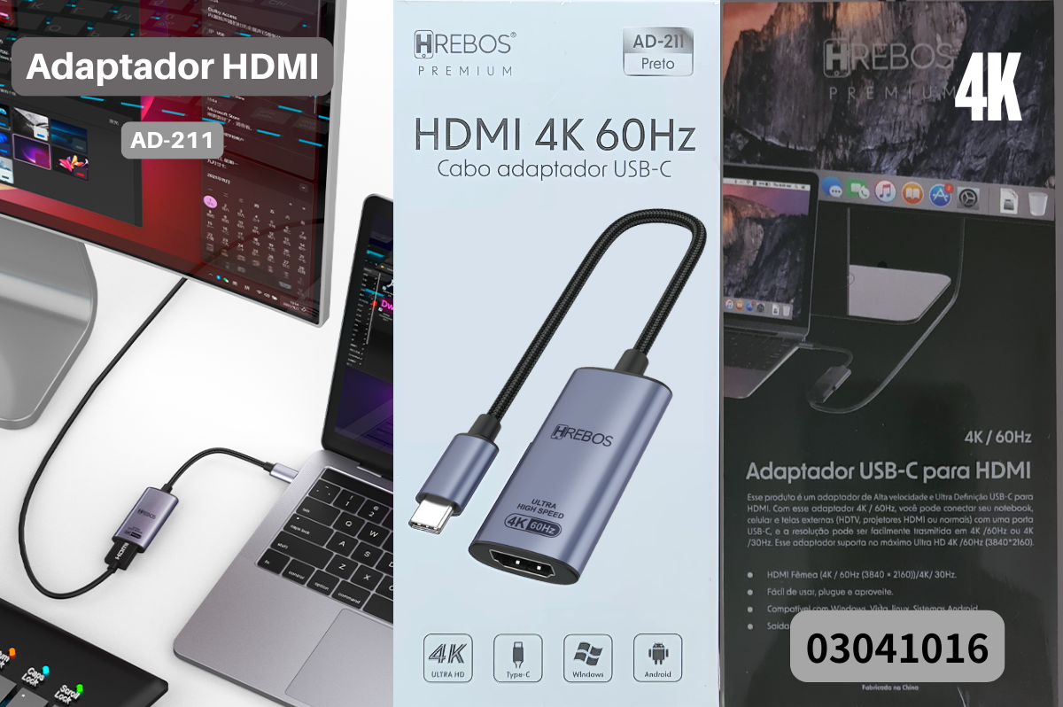 1 x Adaptador Hrebos AD-211 USB-C para HDMI