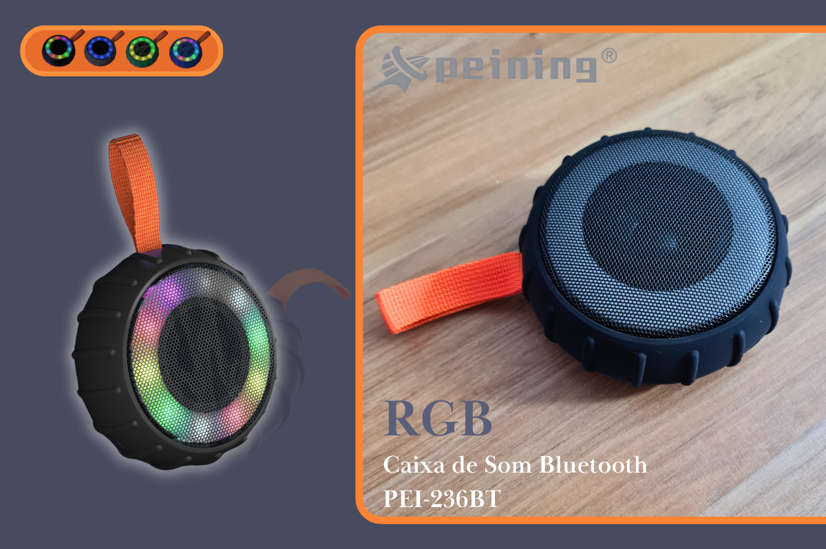 Caixa de Som Bluetooth RGB PEI-236BT: Compacta, Versátil e Resistente