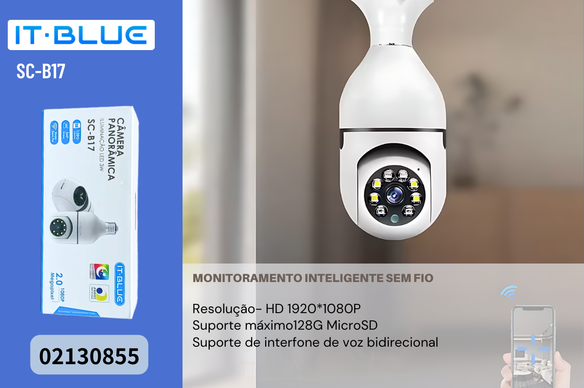 Câmera IP 360° com Soquete It-Blue SC-B17 – Segurança Inteligente e Monitoramento Remoto