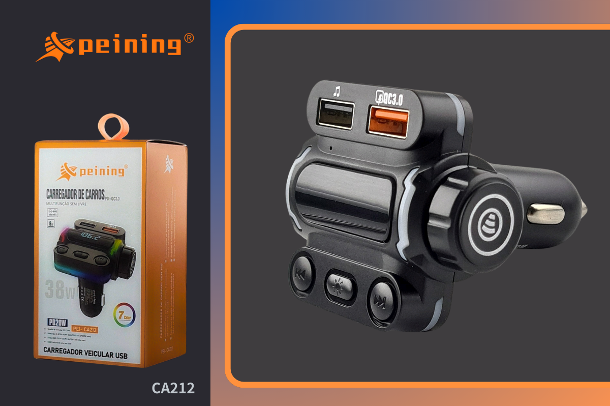 Descrição do Produto: Experimente o carregador veicular Peining CA212, projetado para usuários que valorizam funcionalidade e tecnologia. Este carregador possui um indicador luminoso com cores ajustáveis, múltiplas opções de conexão e suporta música e chamadas sem fio, tornando sua viagem mais conveniente e confortável.