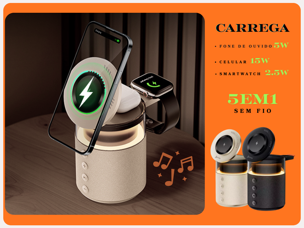Estação de Carregamento Com Caixa de Som sem Fio 5 em 1 – PEI-WS29