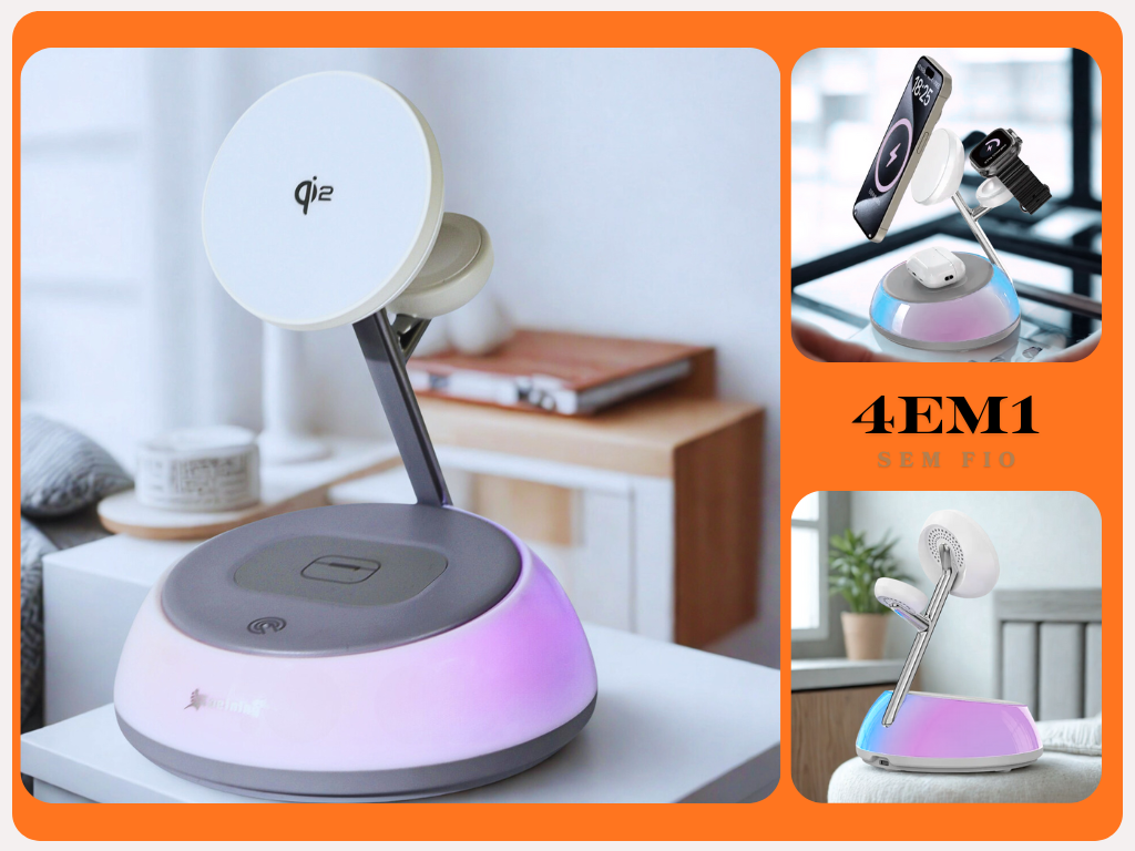 • Funções: Carregamento sem fio 4 em 1 (celular, smartwatch, fones de ouvido)