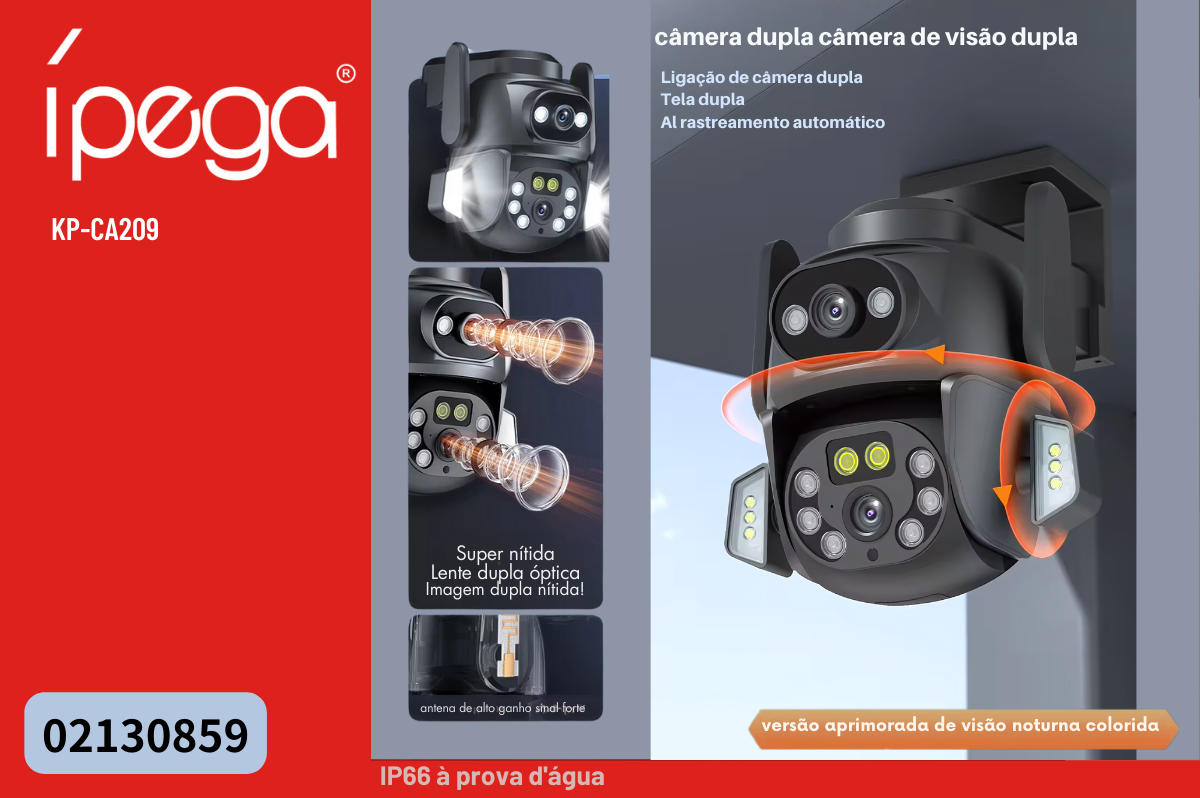 A Câmera de Segurança IP WiFi ÍPEGA KP-CA209 oferece uma experiência de monitoramento avançado e proteção completa para sua residência, escritório ou comércio. Equipada com lente dupla e rotação 360°, proporciona cobertura total sem pontos cegos, garantindo segurança e tranquilidade 24 horas por dia.