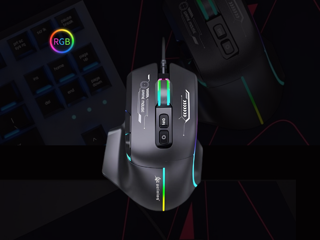O Peining PEI-ME06 é um mouse gamer com fio que oferece 7 botões programáveis, iluminação Chroma RGB e sensor ajustável em quatro níveis de DPI: 1200, 2400, 4800 e 6400. Possui cabo de 1,5 metro, vida útil de 5 milhões de cliques e design ergonômico voltado para jogos de precisão e conforto durante longas sessões.
