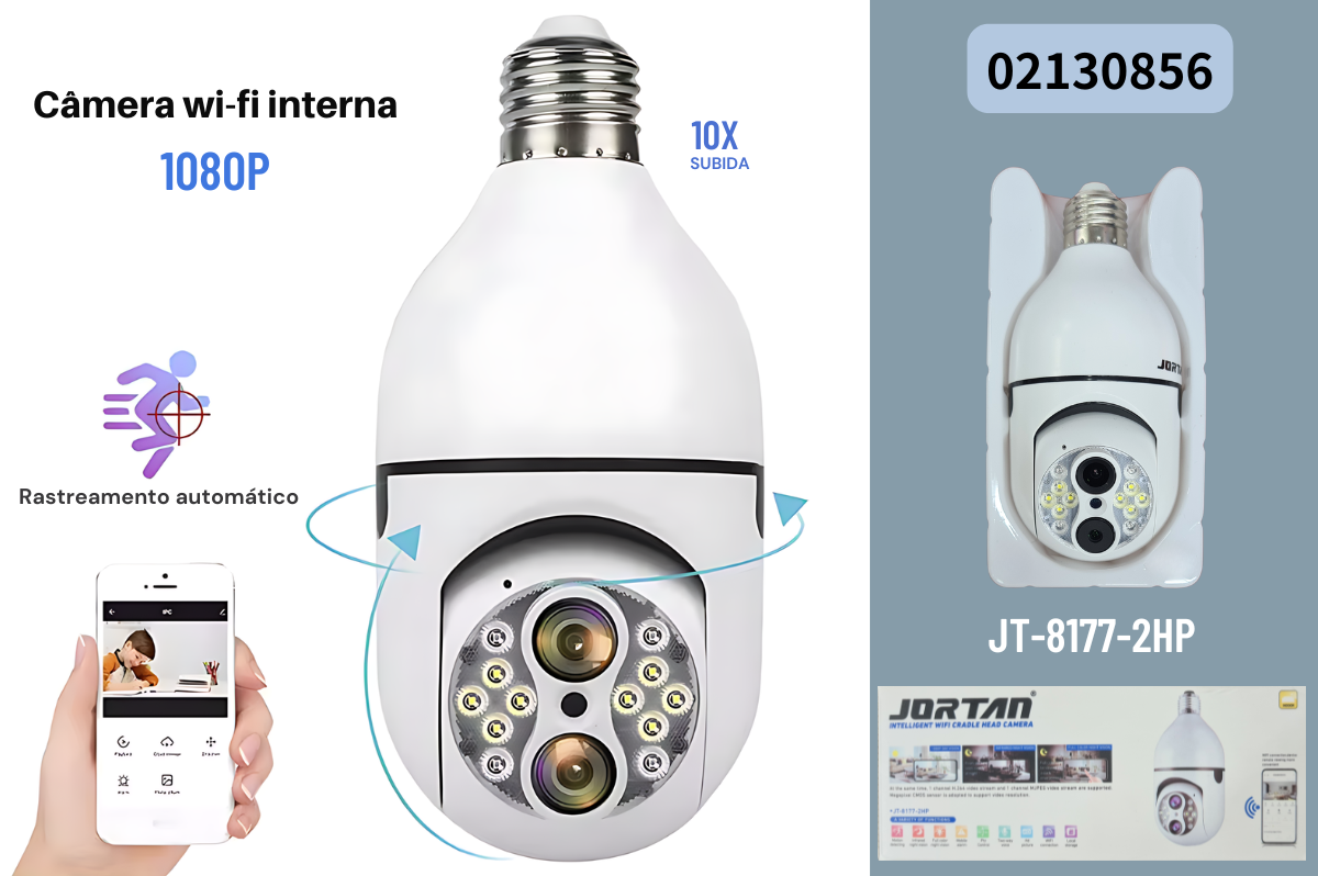Câmera de Segurança IP WiFi JT-8177-2HP – Compacta, Inteligente e Confiável
