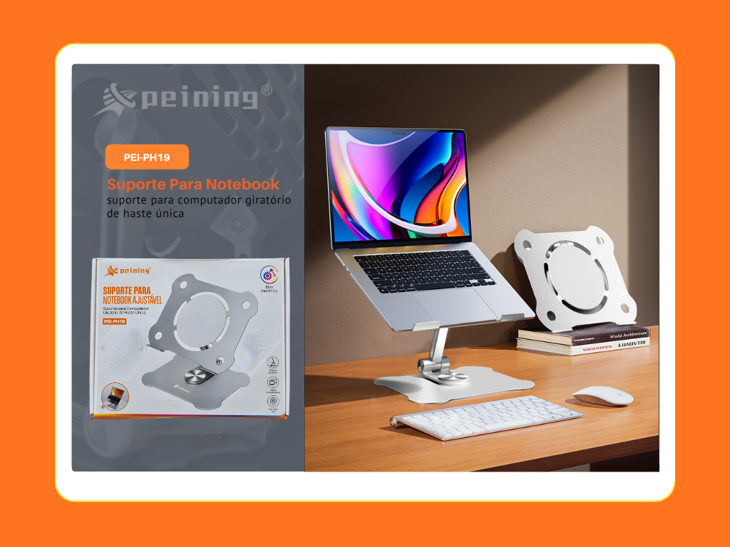Um suporte resistente em alumínio que garante durabilidade e estabilidade para seu notebook ou tablet de 4 a 13 polegadas. Ideal para ajustar o ângulo e melhorar o conforto durante o uso.