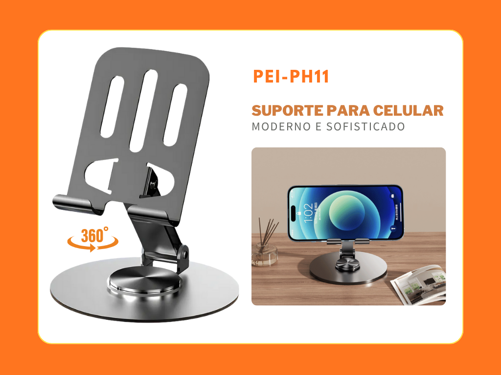 Desfrute da máxima liberdade e versatilidade com nosso suporte para celular de 360 graus, meticulosamente construído com metal de alta qualidade. Seu design moderno não apenas complementa o estilo contemporâneo, mas também oferece um ajuste preciso para qualquer ângulo de visão. Experimente a estabilidade e a confiabilidade que apenas materiais premium podem oferecer, enquanto desfruta da conveniência incomparável de um suporte totalmente ajustável. Seja para chamadas de video ou simplesmente para assistir a vídeos, nosso suporte para celular proporcionará uma experiência excepcional em todas as situações.