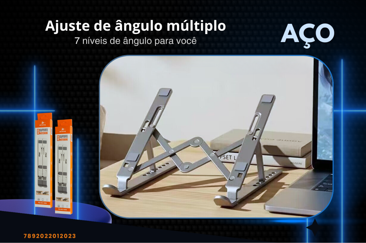 Com um design elegante e moderno, o suporte também possui silicone antiderrapante, garantindo estabilidade durante o uso. Seu design dobrável facilita o armazenamento e transporte, permitindo levá-lo facilmente na bolsa ou mochila.