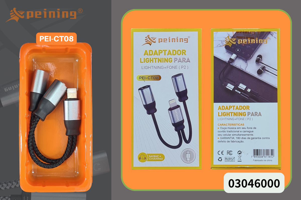 O PEI-CT08 é um adaptador prático e eficiente que permite o uso simultâneo de fones de ouvido P2 (3.5mm) e carregamento em dispositivos Apple com entrada Lightning. Ideal para quem deseja ouvir música e carregar o celular ao mesmo tempo, mantendo a qualidade de áudio e a funcionalidade de chamadas.